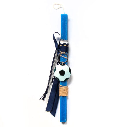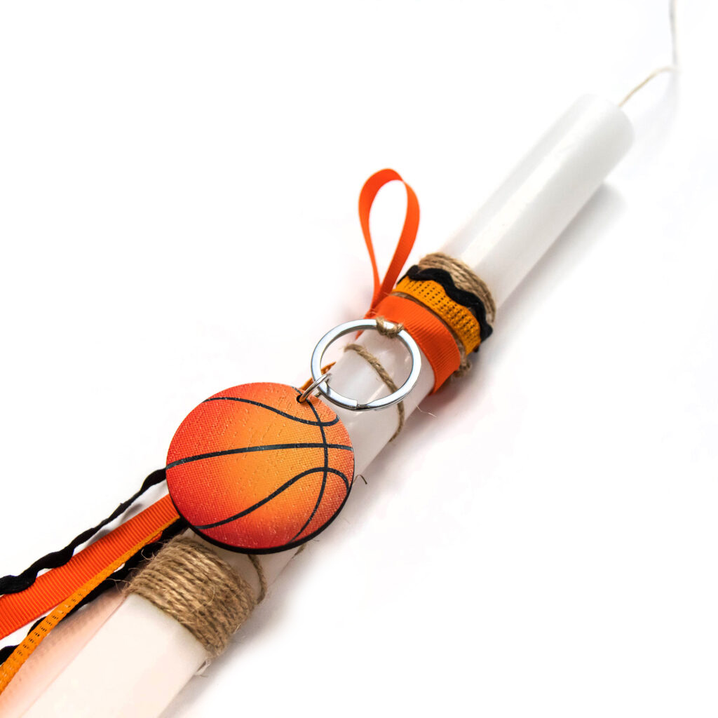 Λαμπάδα με λευκό κερί και ξύλινο μπρελόκ μπάλα του μπάσκετ.