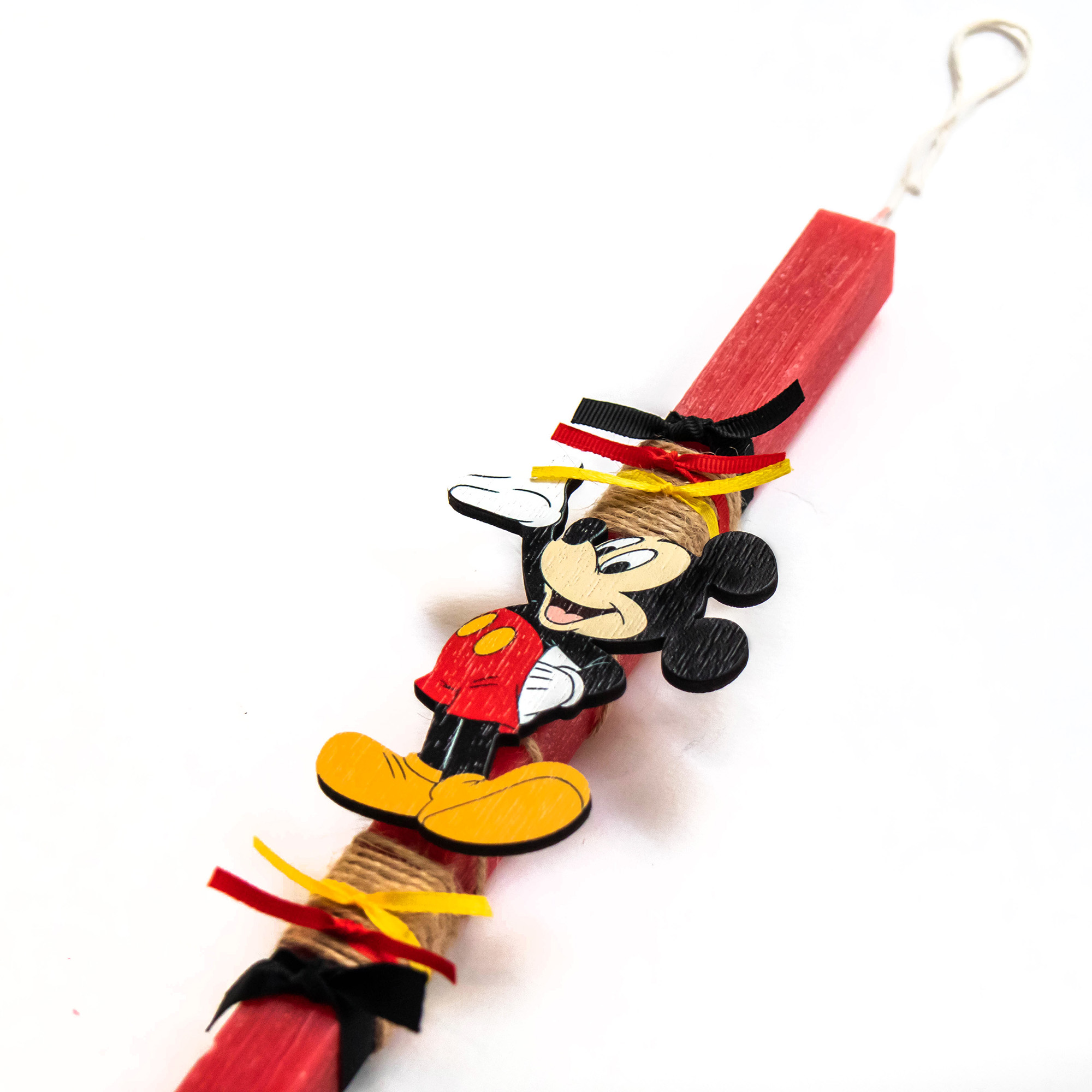 Λαμπάδα με κόκκινο κερί και ξύλινο μαγνητάκι Μίκυ Μάους.