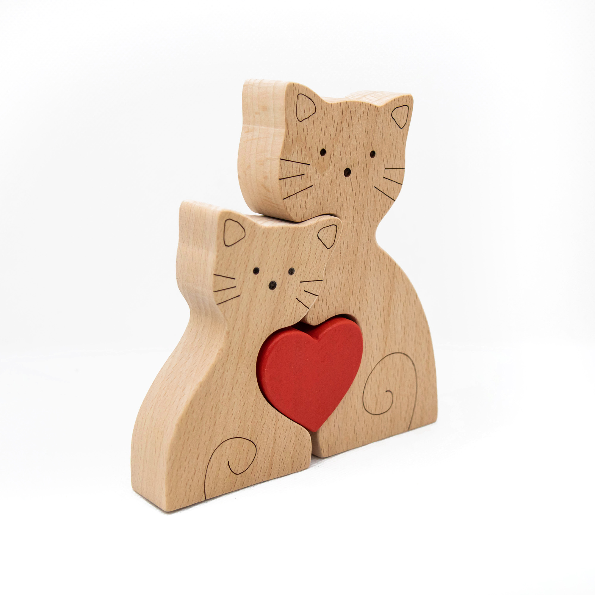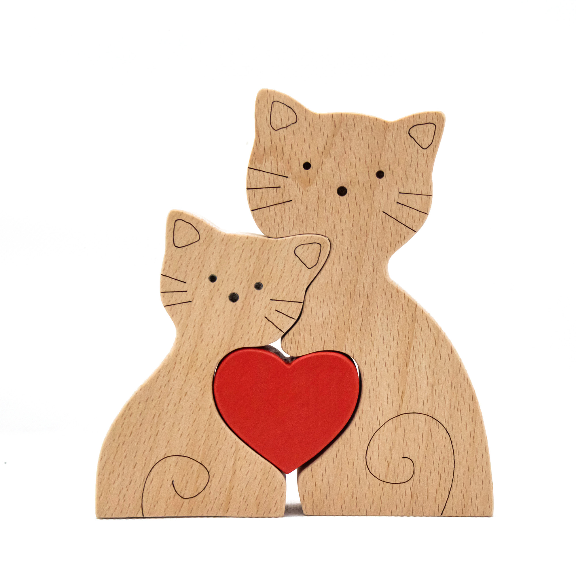 Παζλ από ξύλο οξιάς. Η καρδιά είναι βαμμένη με πιστοποιημένα οικολογικά χρώματα.