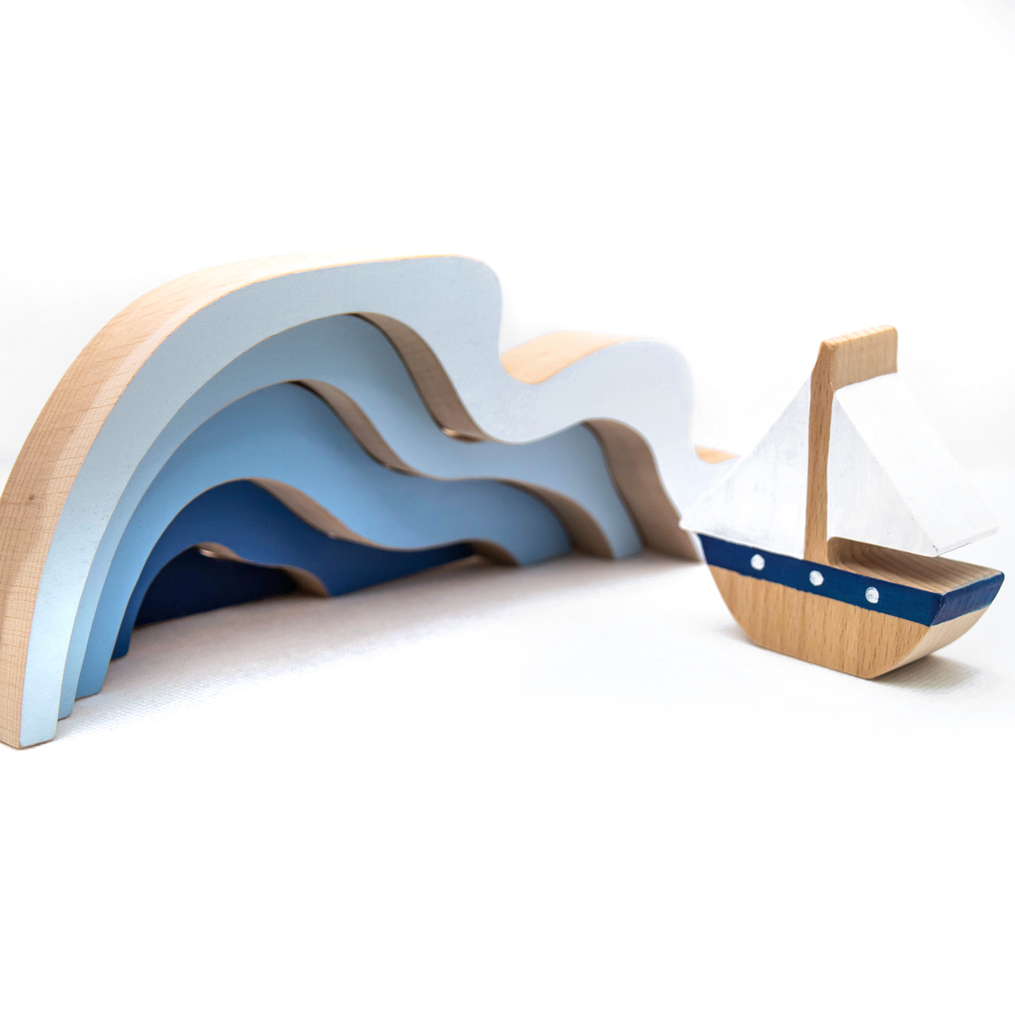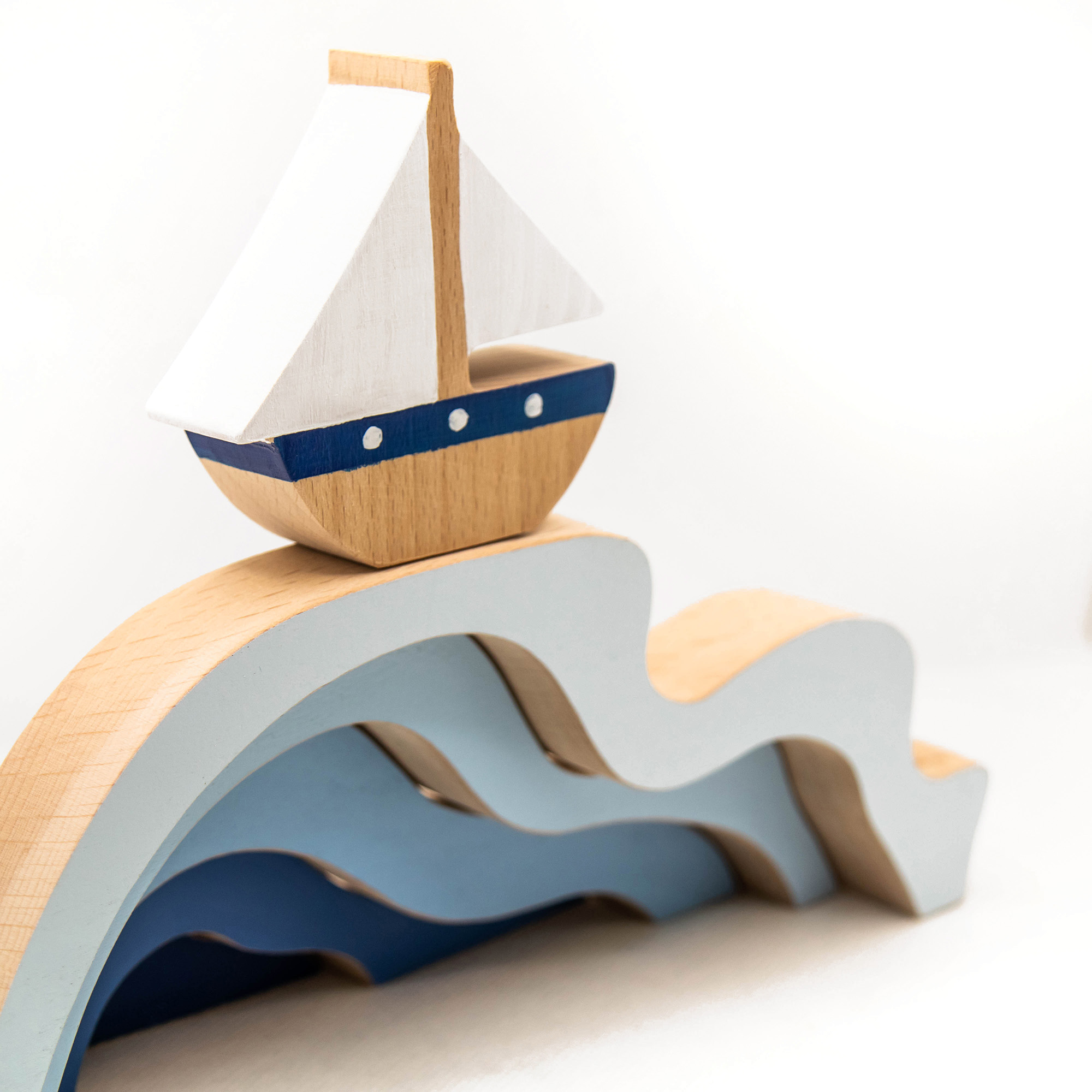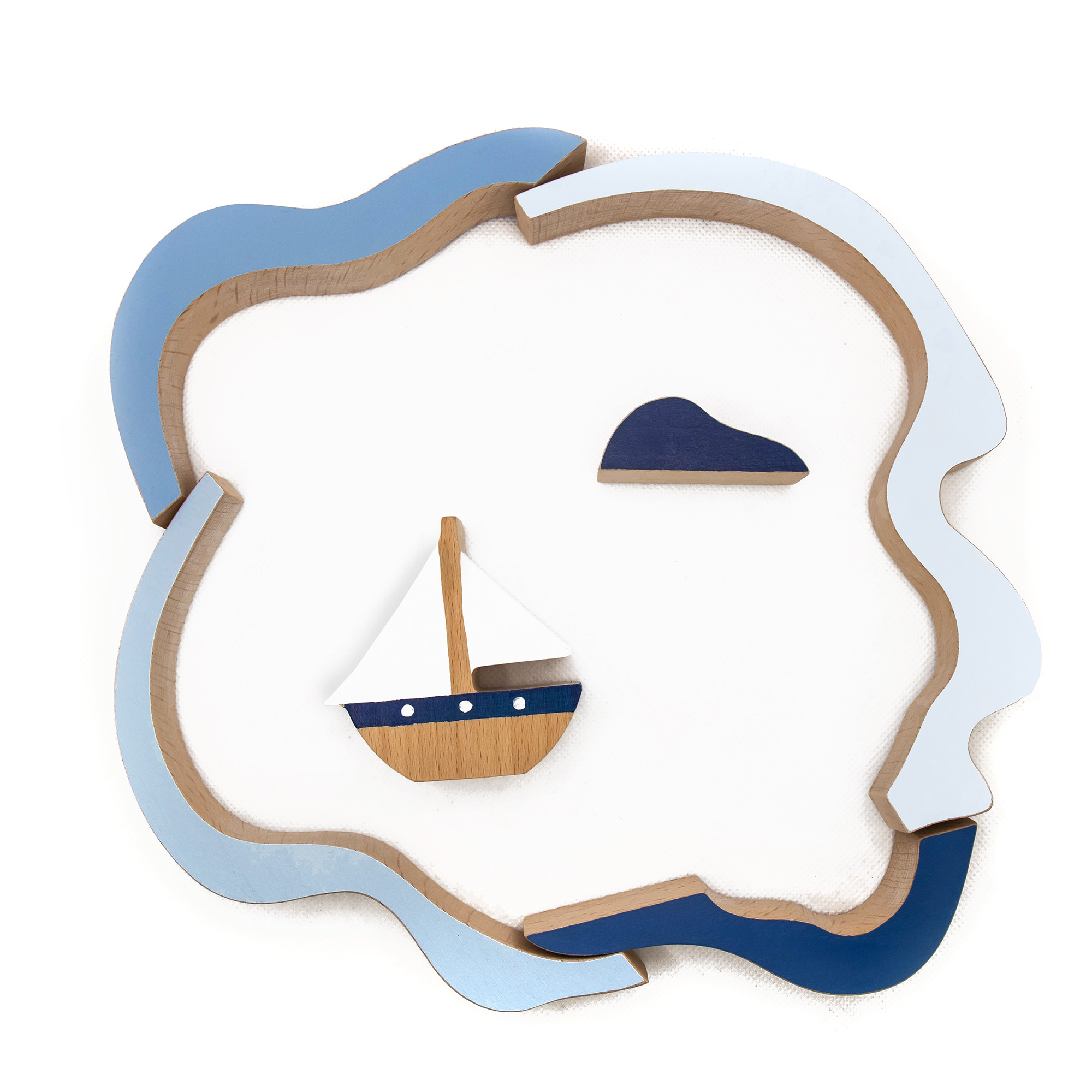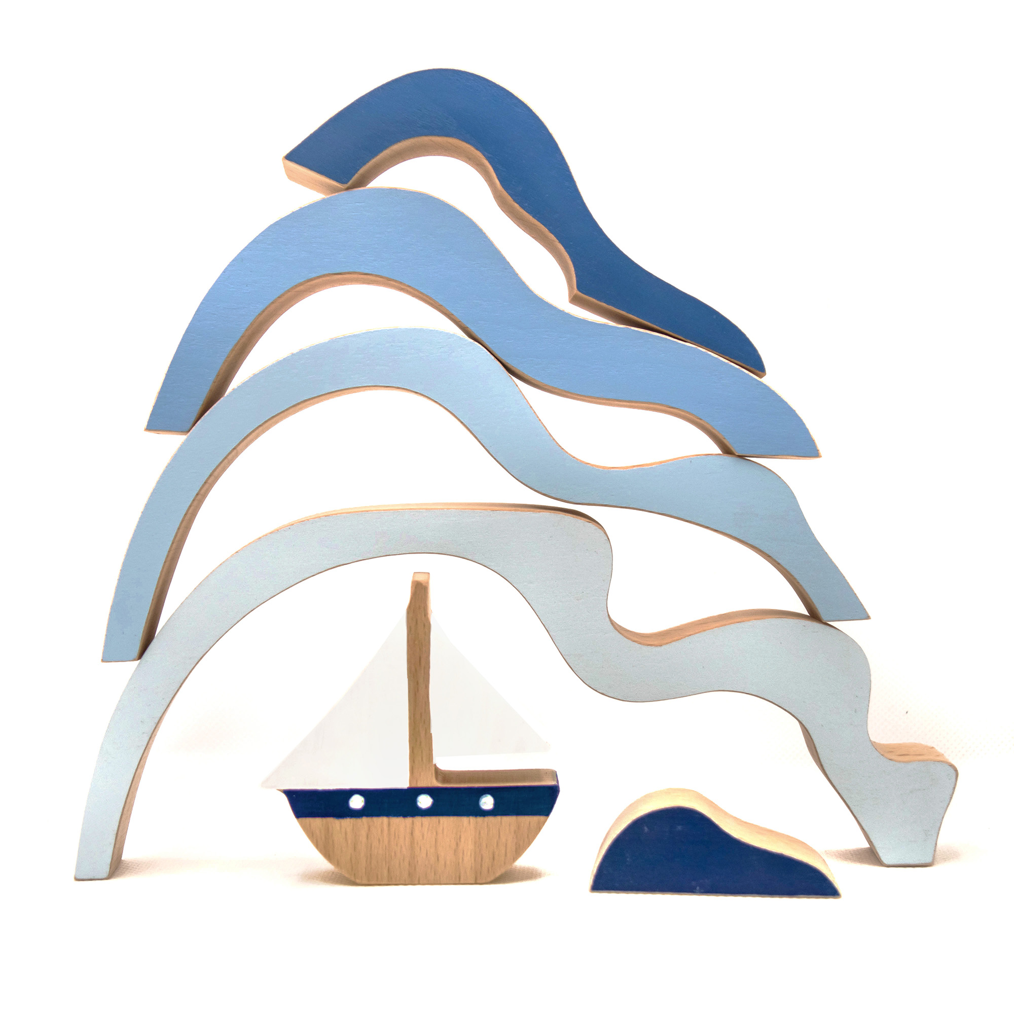 Παζλ καράβι στα κύματα κατασκευασμένο από ξύλο οξιάς και βαμμένο με πιστοποιημένα οικολογικά χρώματα. Περιλαμβάνει 6 κομμάτια.