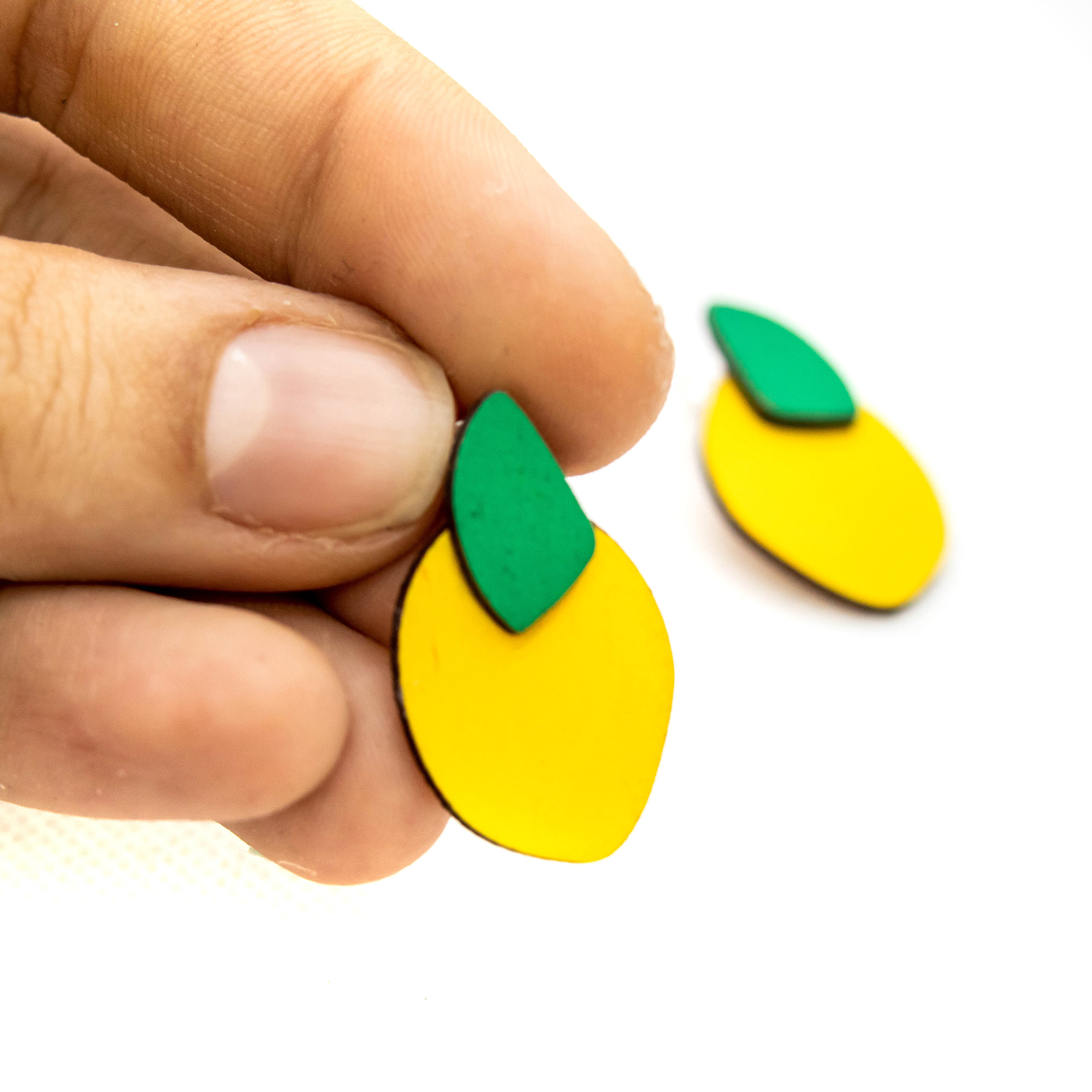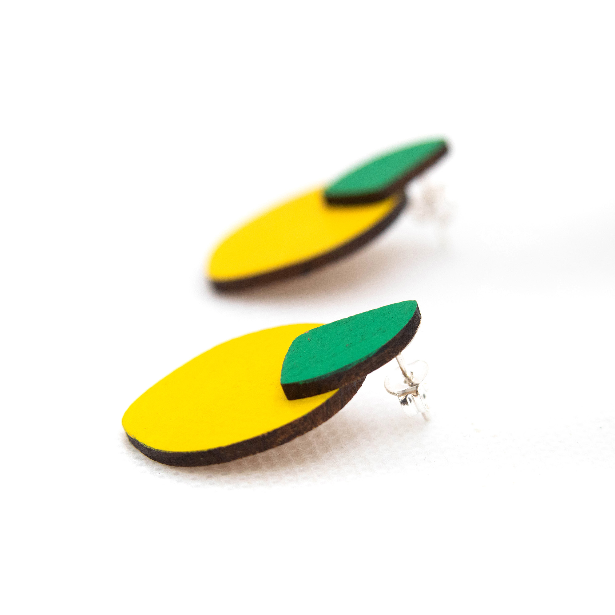 Σκουλαρίκια λεμόνια-μεγάλα με καρφάκι και κούμπωμα επάργυρο. Διαστάσεις: 2 χ 2,5 εκ.