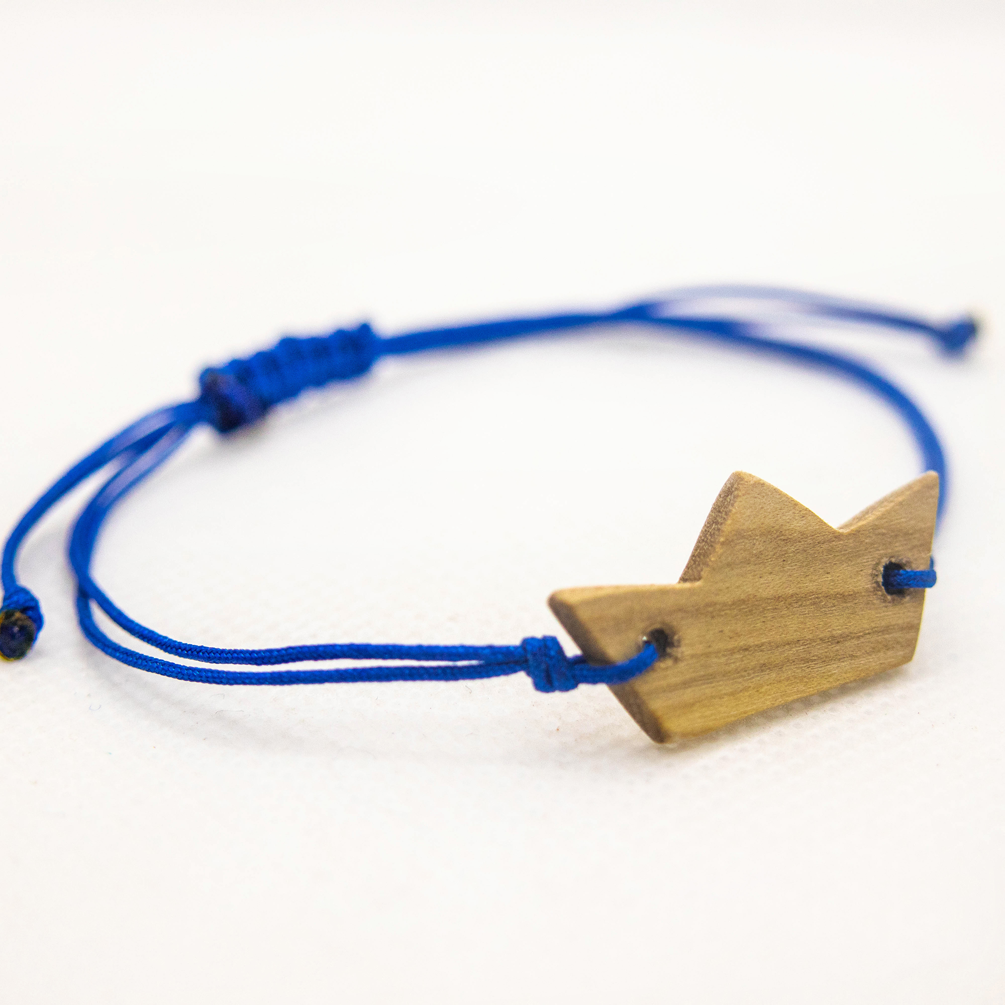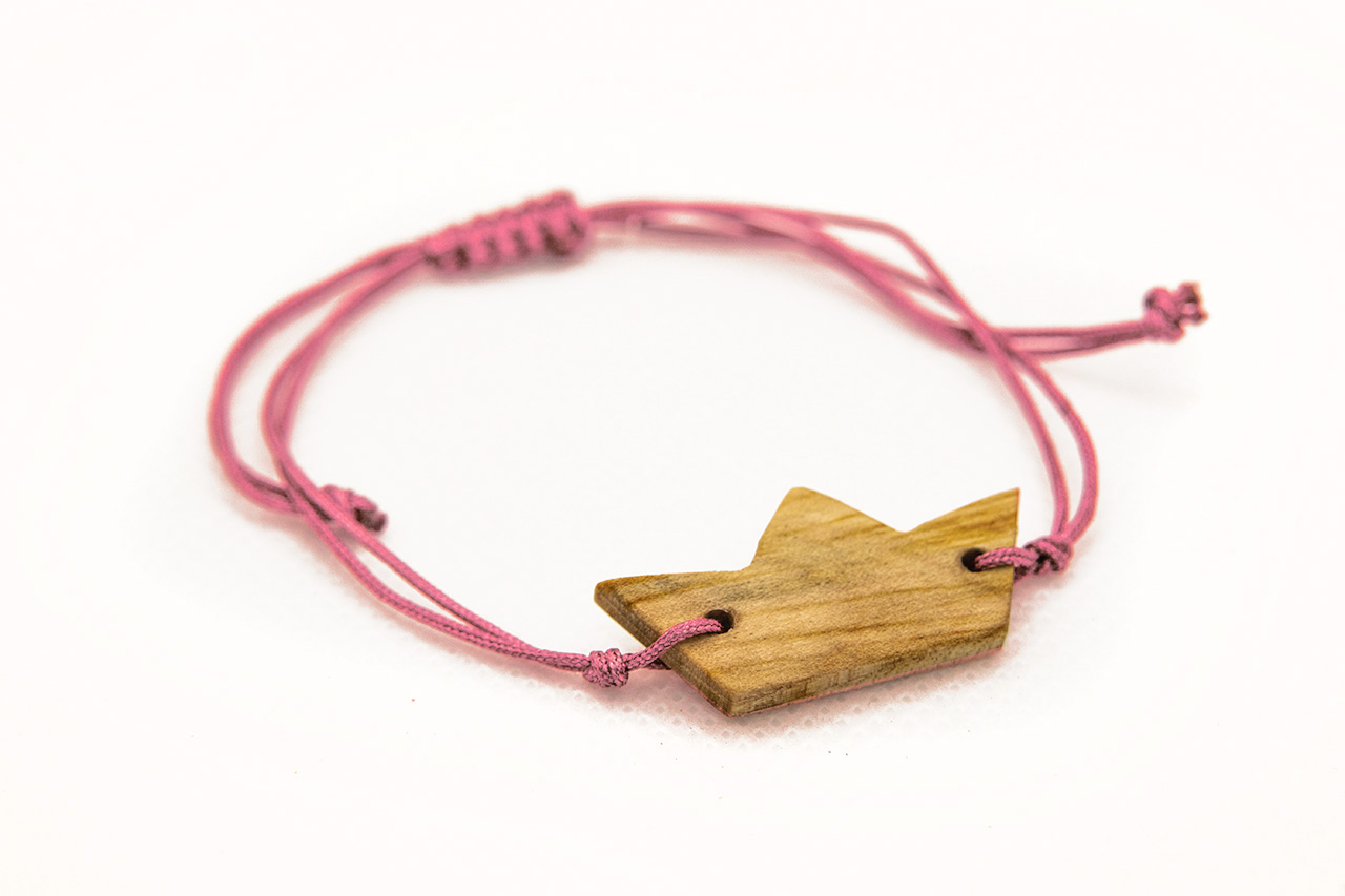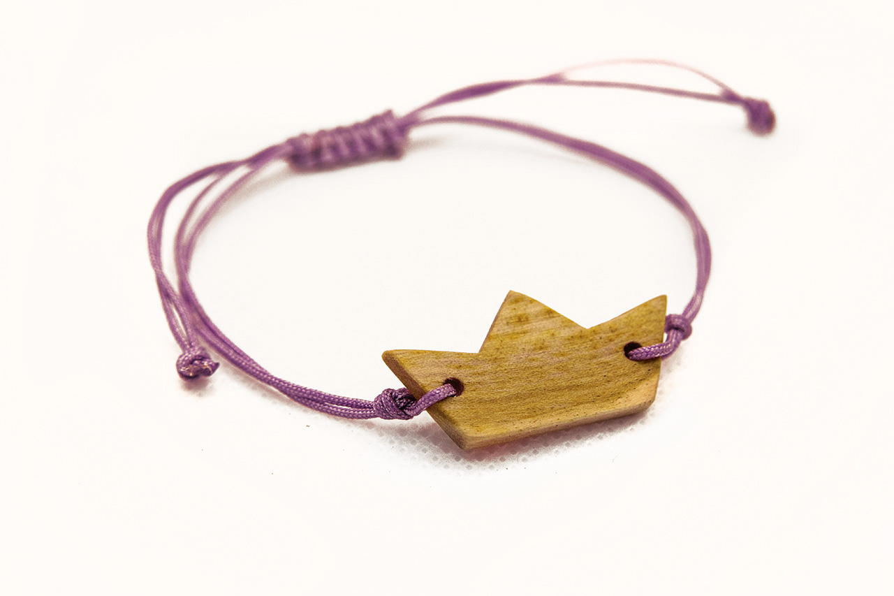 Βραχιολάκι με ξύλινο στοιχείο βάρκα από μαστιχόδεντρο (σχίνο) και δέσιμο μακραμέ. Διαθέσιμο σε 10 διαφορετικά χρώματα.